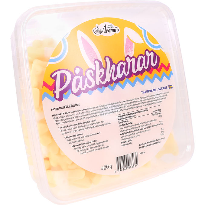 Skumgodis i form av påskharar.