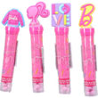 Rosa dextrospastiller med söt jordgubbssmak i en lekfull Barbieförpackning med 2D stämpel på toppen och medföljande klistermärken. Perfekt som en rolig överraskning för barnkalas eller som liten present till Barbieälskaren.