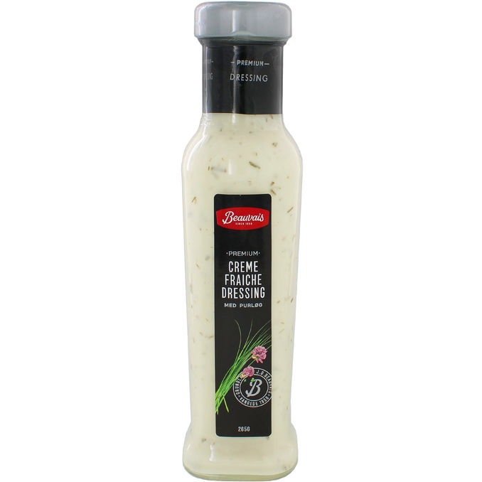 Beauvais Premium Crème Fraiche Dressing är en krämig dressing med fräsch smak av crème fraiche, gräslök och lök som lyfter sallader, sandwich, pitabröd och potatissallad med sin balanserade och lena profil. Dressingen har en mild örtighet och fyllig konsistens som gör den till ett mångsidigt tillbehör i kök och servering.