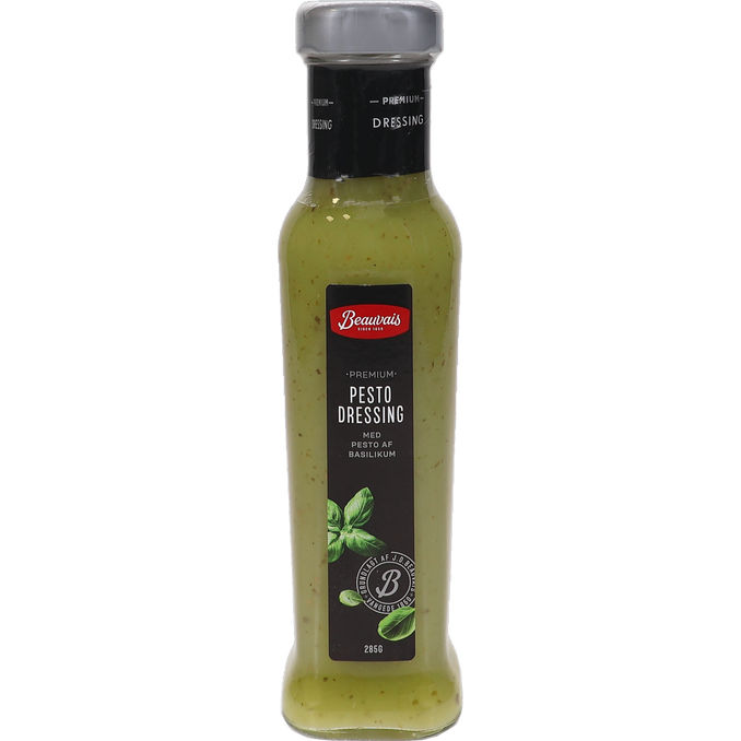 En smakrik pestodressing med pesto av basilikum och pinjekerner som ger en rund och aromatisk smak av sommar och Italien. Den passar perfekt att ringla över friska sallader, som dip till grillade grönsaker eller som smakrik topping till pasta och grillat kött.
