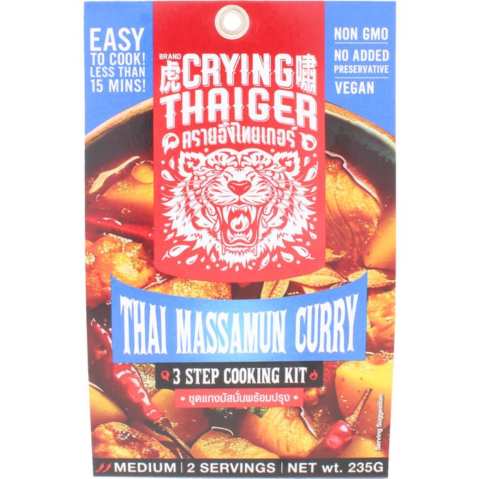 Ett komplett matkit för att laga en fyllig och aromatisk thailändsk massamancurry med kokosmjölk, currypasta och jordnötter. Ger en mild till medelstark smakupplevelse med djup kryddighet och är enkelt att tillaga i tre steg hemma.