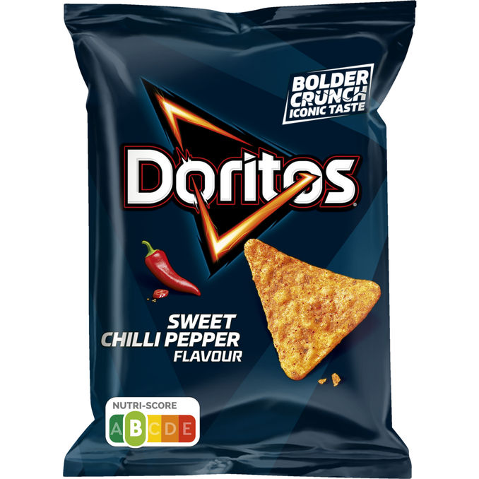 Smarriga majssnacks från Doritos med smak av kryddig chili och peppar, här i en smidig portionspåse.