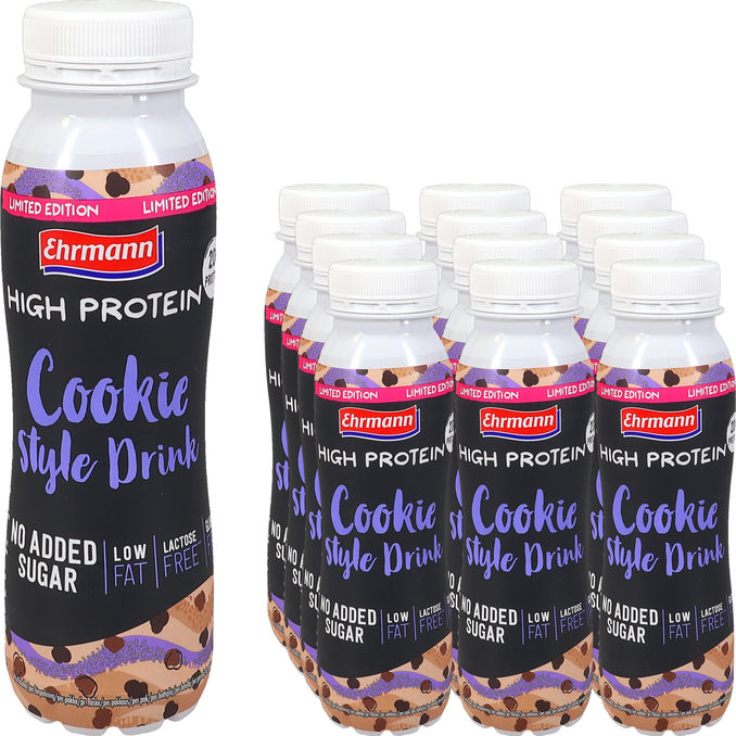 Ehrmann High Protein Drink är en krämig och proteinrik mjölkdryck baserad på mjölk med tre underbara smaker från naturliga ingredienser vilket ger den extra krämiga och fylliga smaken. Ehrmann High Protein Drink är laktosfri, glutenfri, innehåller inget tillsatt socker och har ett lågt kalori- och kolhydratinnehåll.
