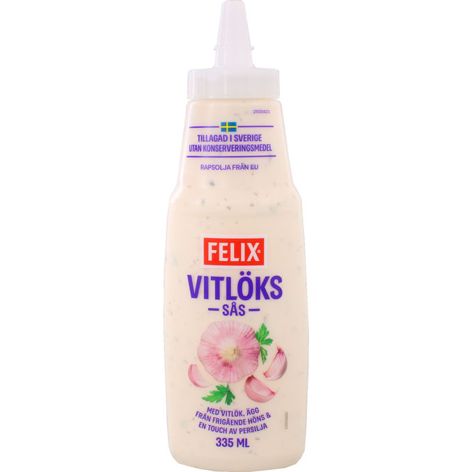 En krämig vitlökssås med tydlig vitlökssmak som passar perfekt till grillat, sallader och wraps. Tillverkad i Sverige med rapsolja från EU och utan konserveringsmedel.