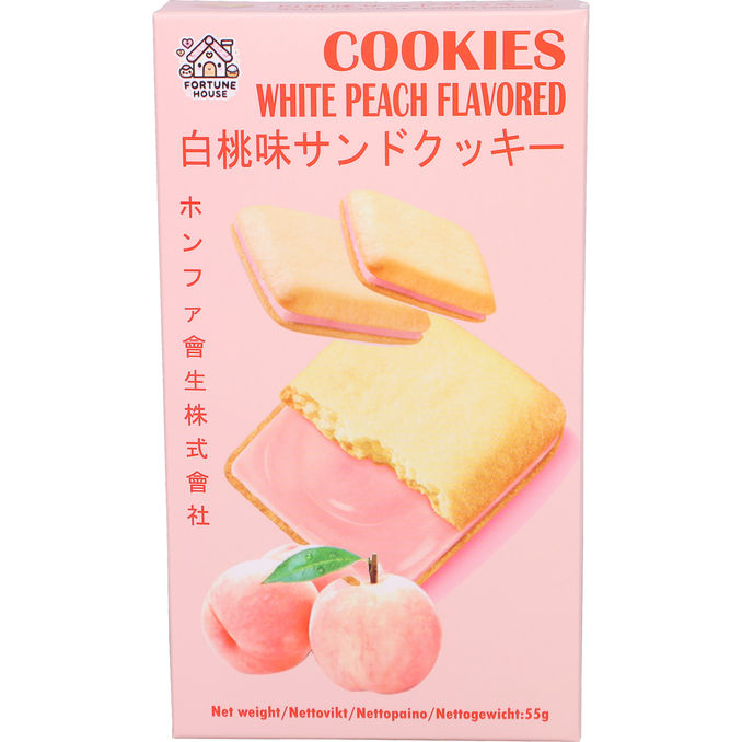 Låt dig förföras av den sofistikerade smaken av vit persika i dessa spröda kex med krämig fyllning! 🍑✨ Den eleganta kombinationen av krispig textur och en silkeslen insida ger en lätt och somrig smakupplevelse som är svår att motstå. Dessa delikata små kakor är det självklara valet när du vill lyxa till fikat med en touch av asiatisk finess!