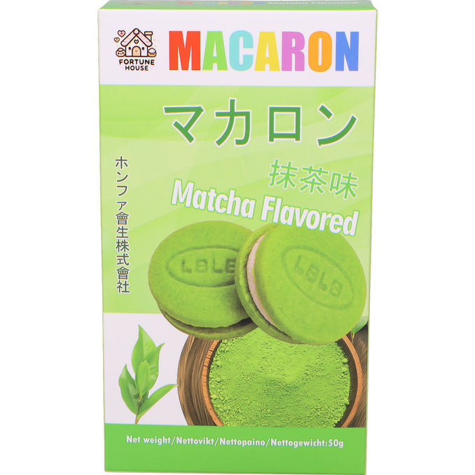 Njut av en asiatisk klassiker i kakformat! Fortune House Macarons med smak av Matcha kombinerar en spröd textur med den unika och fylliga smaken av grönt te. Förpackningen på 50g är perfekt för en liten lyxig paus eller att dela med en vän.