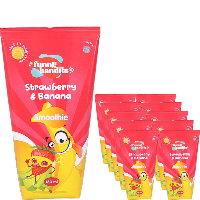 Funny Bandits Strawberry & Banana Smoothie är en fruktig och uppfriskande smoothie med naturlig smak av jordgubb och banan som passar perfekt som mellanmål, frukost eller när du behöver något snabbt och gott att dricka.