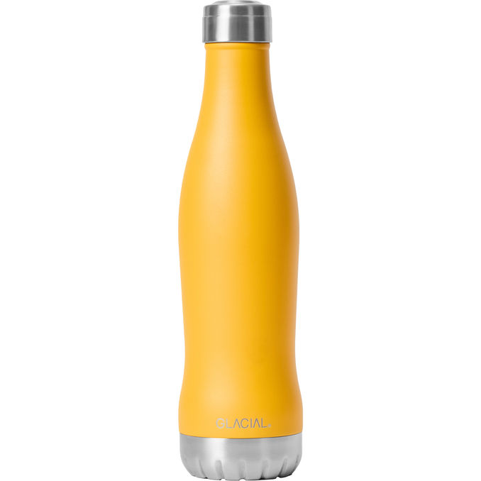 En färgklick för en mer hållbar vardag! ☀️ Denna snygga Glacial-flaska i matt gult livar upp vilket skrivbord eller gympass som helst. Med en volym på 600 ml håller den dig hydrerad hela dagen. Flaskan är naturligtvis helt BPA-fri, giftfri och kombinerar smart funktion med tidlös svensk design. ✨