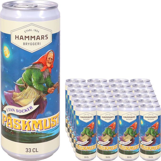 Säkra påskens godaste dryck med ett helt flak av Hammars Bryggeris sockerfria påskmust. Hammars Bryggeri, med anor sedan 1904, är kända för sin hantverksmässiga kvalitet och denna påskmust är inget undantag. Du får den där fylliga, skummande och kryddiga smaken som en riktig must ska ha, men utan det tillsatta sockret.