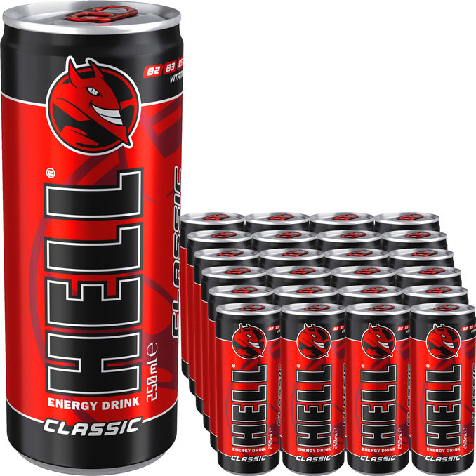 HELL Energy Classic 25cl är en energidryck som ger snabb och tydlig energikick när du behöver mest. Med en praktisk 25 cl burk passar den perfekt i väskan, på kontoret eller efter träningen. Den klassiska smaken balanserar sötma och syra så att den passar både vardag och intensiva pass. Innehåller koffein som bidrar till ökad vakenhet och koncentration, vilket gör den idealisk för studier, jobb eller längre timmar på fältet. Förpackningen med 24 st tunnare burkar gör den lätt att dela med laget eller föreningen. En pålitlig följeslagare när du behöver snabb energi utan krångel. Observera att konsumtion bör ske med måtta och i enlighet med din livsstil och hälsomål.