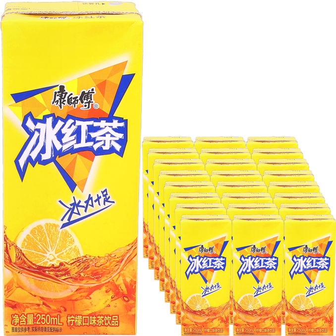 24-pack med Kangshifu Ice Tea, ett uppfriskande iste gjort på svart te med fruktig och balanserad smak. Perfekt som svalkande dryck till måltider eller vardagsstunder.