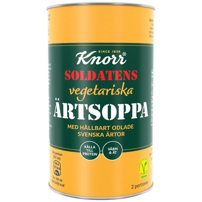 Soldatens ärtsoppa - en älskad svensk klassiker nu utan fläsk och helt vegetarisk. Lagad med hållbart odlade svenska ärtor som ger den dess krämiga konsistens.