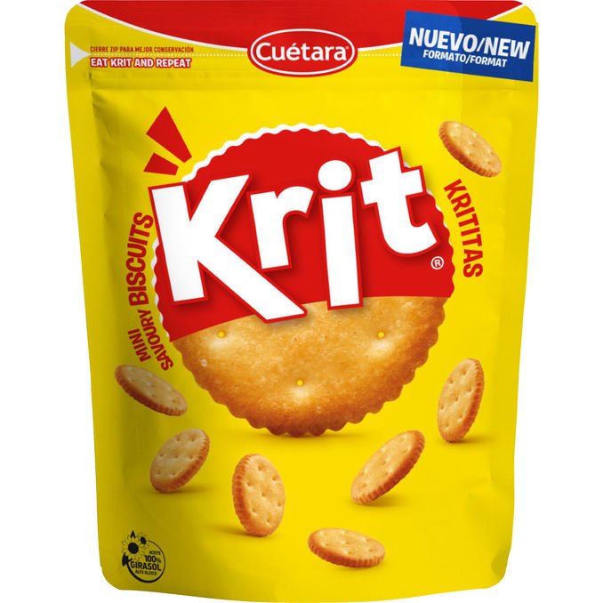 Frasigt värre! ✨ Cuétara Krit Mini Savoury Biscuits är spröda små saltkex som bakats med solrosolja för en perfekt krispighet. Denna påse på 200 g är idealisk som snacks eller till osten! 🥨💛