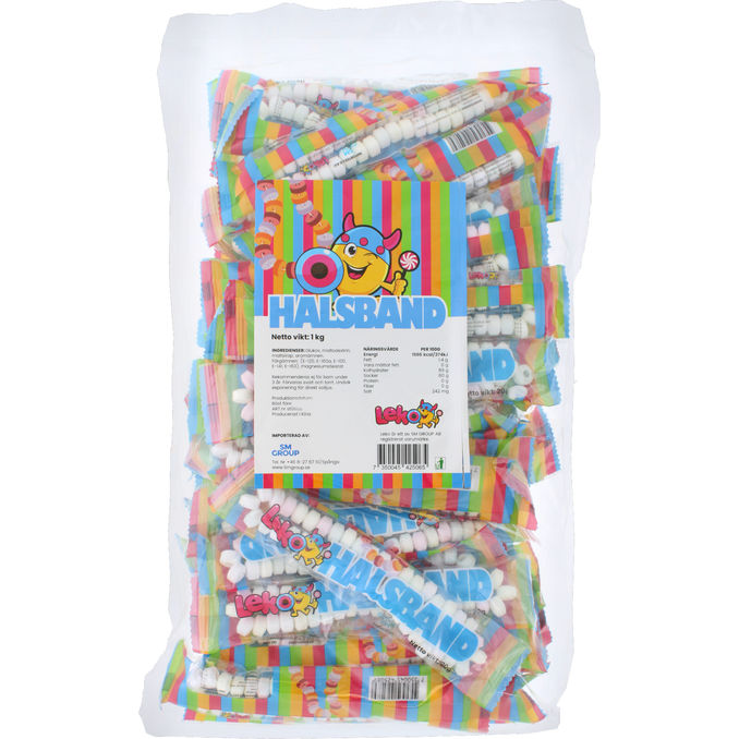Klassiskt godishalsband i färgglada pasteller från Leko – ett nostalgiskt godis som både smakar gott och är roligt att bära! Tillverkad av glukos och maltodextrin med fruktiga aromer och vackra färger. Perfekt för kalas, godispåsar eller som en lekfull nostalgifavorit.