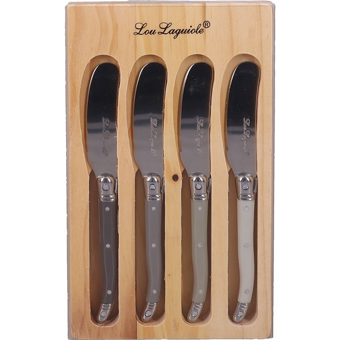Lyft dukningen med fransk elegans! 🥖 Detta 4-pack smörknivar från Lou Laguiole har klassisk design med stilrena gråtonade skaft. Perfekt tillbehöret för din nästa ostbricka! 🧀✨