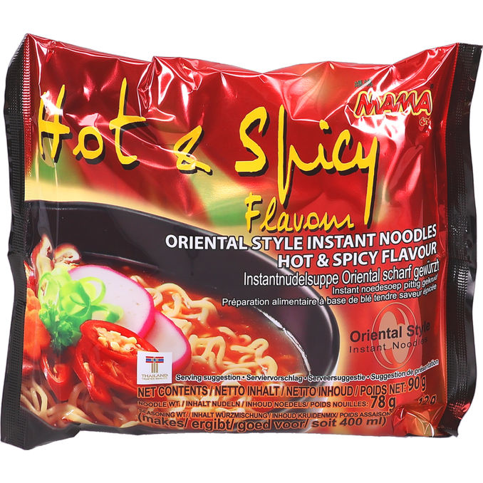 Mama Oriental Style Instant Noodles erbjuder klassiska orientaliska smaktoner med en het och kryddig touch som tillfredsställer alla fans av stark mat. Snabbt och enkelt att tillaga - bara tillsätt kokande vatten för en smakrik måltid när som helst på dagen.