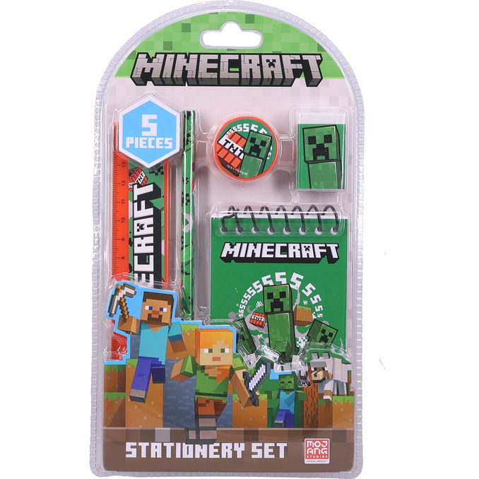 Gör läxläsningen till ett äventyr med detta episka Minecraft-skrivset som innehåller allt en gamer behöver! Setet pryds av ikoniska karaktärer som Steve, Alex och en smygande Creeper, och inkluderar både anteckningsblock, linjal, penna, suddgummi och pennvässare. Den perfekta presenten som kombinerar nytta med nöje och sprider äkta spelglädje i skolbänken!