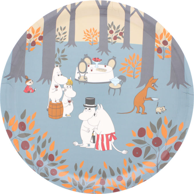 Denna runda Mumin-serveringsbricka Ø 31 cm har ett vackert motiv inspirerat av originalillustrationer från Mumin och är tillverkad i slitstark björkfanér, vilket gör den både dekorativ och funktionell i köket. Den passar utmärkt för att servera kaffe, frukost eller snacks och ger en lekfull och stilfull detalj till dukningen.