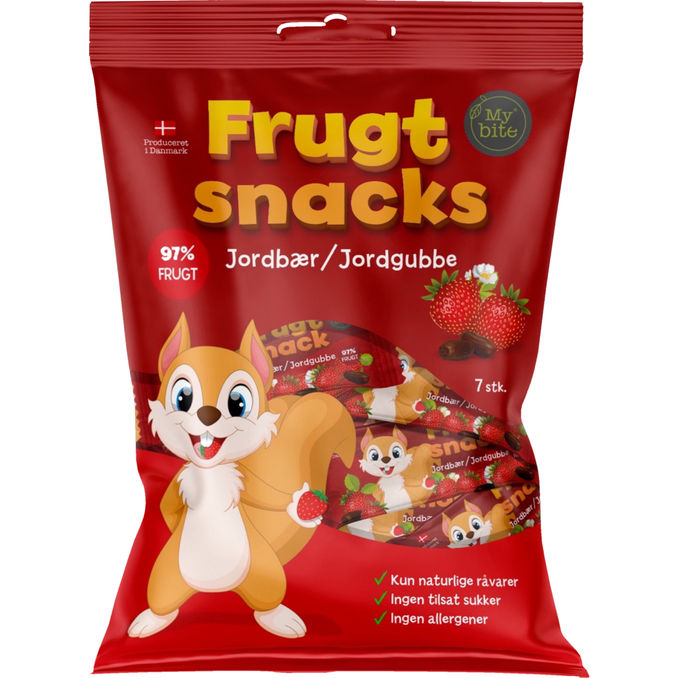 Fruktsnacks gjorda på dadlar och med en god smak av jordgubb. En perfekt munsbit för barnen istället för godis.
