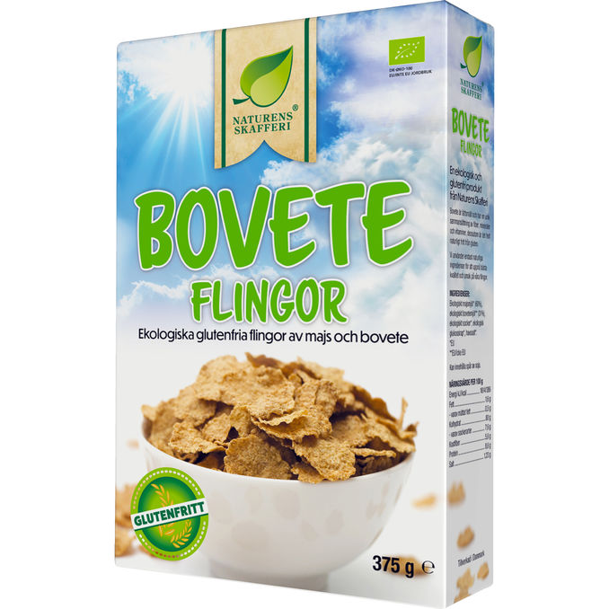 Ekologiska och glutenfria frukostflingor gjorda på majs och bovete med en lätt krispig konsistens. Perfekta till frukost med mjölk eller yoghurt och ett naturligt alternativ för dig som vill undvika gluten.