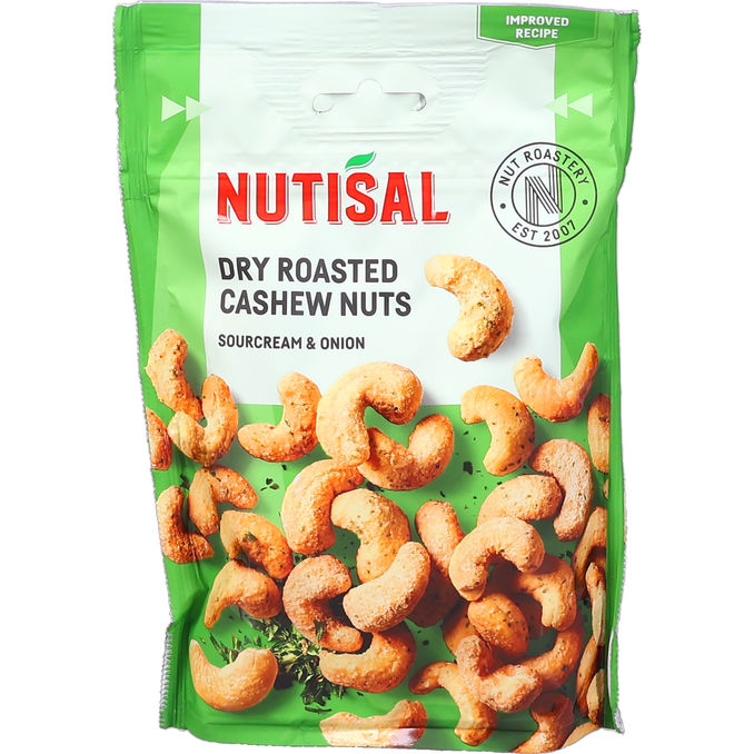 Njut av krispiga, torrrostade cashewnötter med smak av sourcream & onion! Denna påse på 140g ger dig ett lyxigt snack med fyllig sälta och perfekt crunch. Ett självklart val för myset!