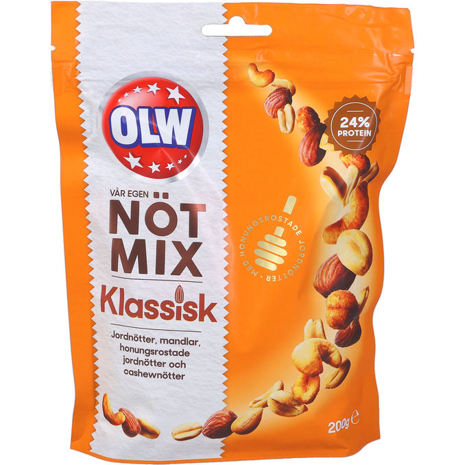 Klassisk nötmix med jordnötter, mandlar, honungsrostade jordnötter och cashewnötter. Perfekt till fredagsmyset eller som tilltugg!