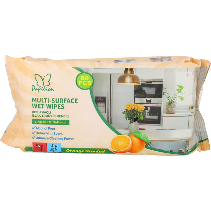 Perfekt för effektiv rengöring på alla ytor. Den apelsin doftande servetten ger både hållbarhet och smidighet för att snabbt ta bort smuts och fläckar. Finns 80 stycken servetter i ett paket.