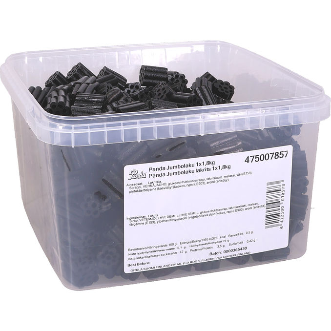Hela 1,8k kilo jumbolakrits. Jumbolakrits är en mjuk söt lakrits från Panda