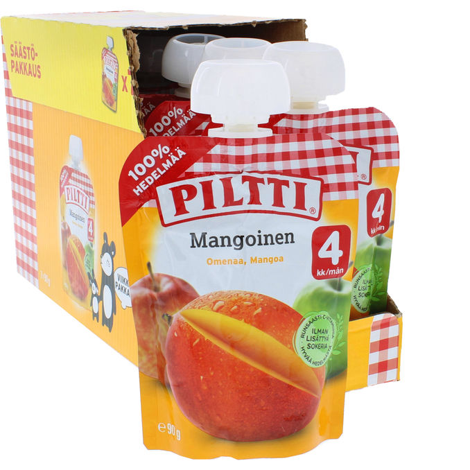 En klämmis för barn från 4 månader som innehåller en god mangopuré.