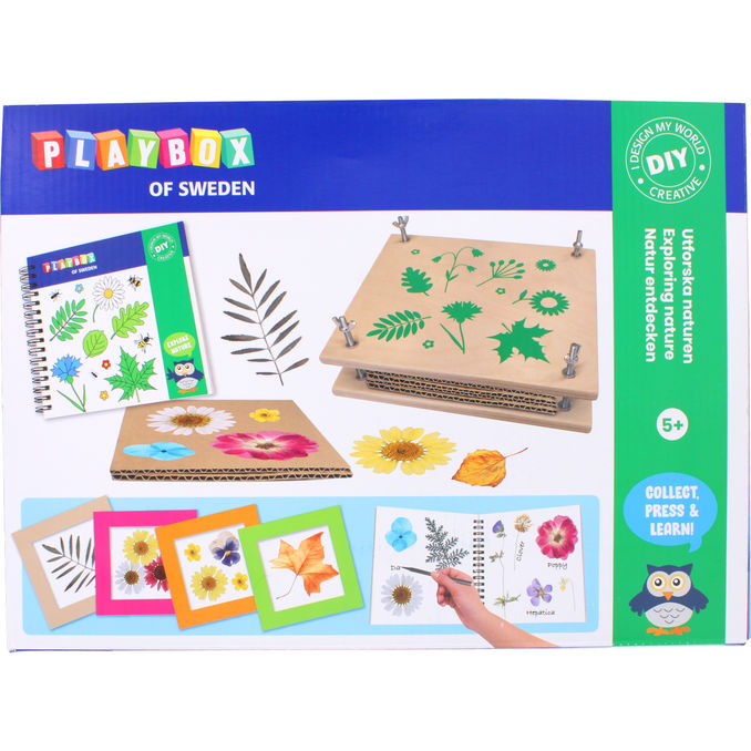 Ett kreativt och lärorikt natur-pysselset där barn kan studera, plocka och pressa växter och blommor för att skapa vackra tavlor och utforska naturens mångfald. Perfekt för nyfikna barn som gillar både kreativitet och naturvetenskap.
