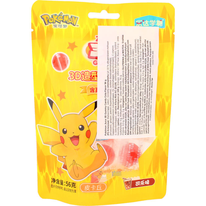 Dessa Pokemon Juice 3D Gummy Candy Cola Flavor är läckra gelégodisar med klassisk colasmak och en saftig, mjuk konsistens som gör dem roliga att äta. Godiset kommer i en färgglad påse med Pokémon-tema och är perfekt som ett roligt snacks eller present till Pokémon-älskare i alla åldrar.