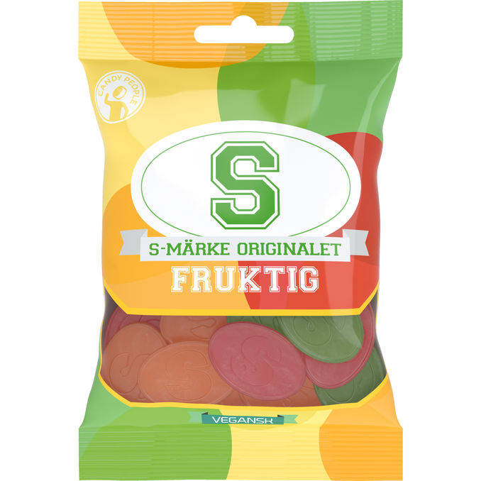 En färgsprakande klassiker som alltid går hem! 🍬 S-Märke Originalet Fruktig bjuder på en härlig mix av sega gelémärken med friska fruktsmaker. Helt veganska och perfekta för fredagsmyset! 🍊🍓🍏✨