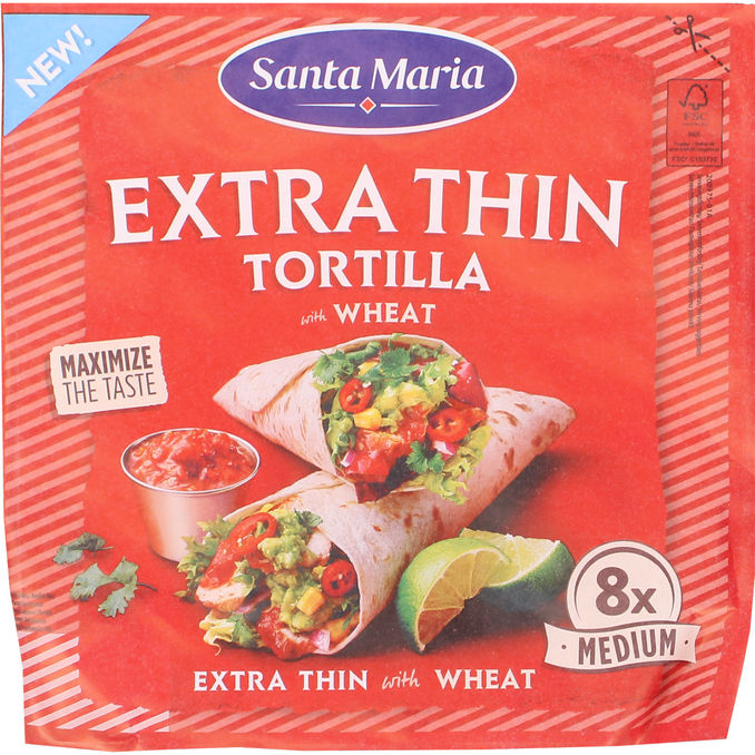 Extra tunna vetetortillas som är mjuka och flexibla, perfekta att fylla med dina favoritingredienser. Passar utmärkt till tacos, wraps och andra mexikanskinspirerade rätter där du vill ha en lätt och tunn tortilla.