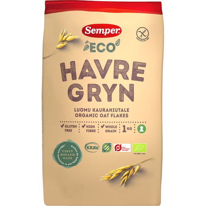 Ekologiska och glutenfria havregryn från Semper, gjorda på ren fullkornshavre som specialhanterats från utsäde till produktion för att minimera risken för inblandning av andra sädesslag. Dessa havregryn är rika på fiber, KRAV-märkta och perfekt att använda till klassisk gröt, i müsli eller i bakning för en nyttig frukost eller mellanmål.