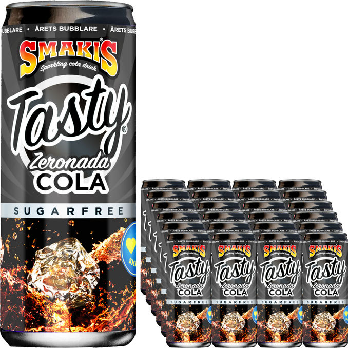 Smakis Tasty Zeronada Cola är en fräsch och bubblig läsk med klassisk colasmak helt utan socker. Drycken innehåller koffein och är sötad med sötningsmedel för en uppfriskande smakupplevelse med minimala kalorier. Perfekt som törstsläckare när du vill njuta av smaken av cola utan dåligt samvete.