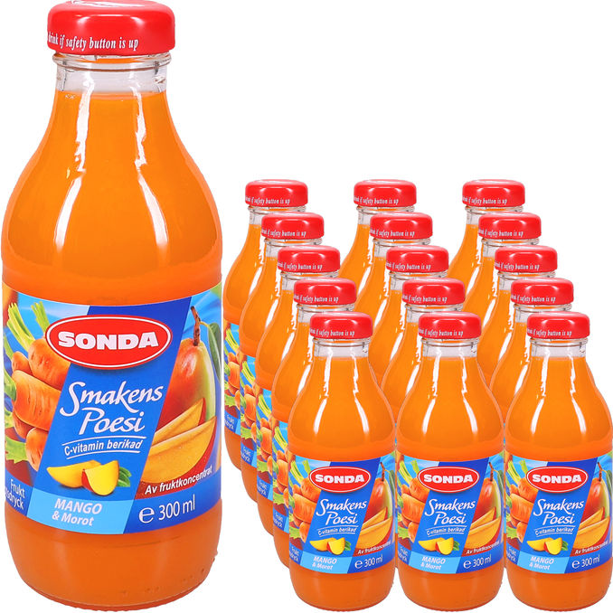 Fruktig dryck med smak av mango och morot som ger en söt och tropisk smakupplevelse. Berikad med C vitamin och tillverkad av koncentrerade juicer för en uppfriskande och balanserad dryck.