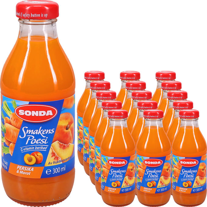 Fruktig dryck med smak av persika och morot som ger en mjuk och söt smakupplevelse. Berikad med C vitamin och tillverkad av koncentrerade juicer för en uppfriskande och balanserad dryck.