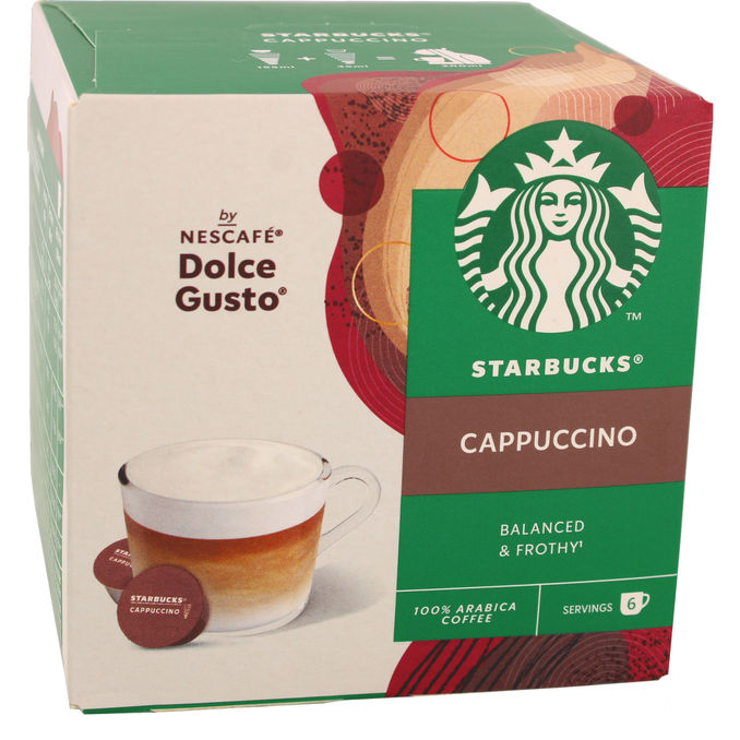 Starbucks Nescafe Dolce Gusto Cappuccino är en perfekt balanserad kombination av fyllig espresso och ett luftigt täcke av krämigt mjölkskum. Med kaffebönor av hög kvalitet och en smak inspirerad av Starbucks ikoniska original kan du enkelt njuta av en lyxig kaféupplevelse direkt i ditt eget hem.