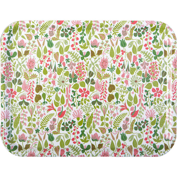 Dukad för sommar hela året! 🌸 Denna eleganta bricka med Stig Lindbergs klassiska blommönster förvandlar varje fika till en festlig stund. Tillverkad i Sverige av hållbar björkfaner, kombinerar den tidlös design med praktisk funktion. ✨ Ett måste för dig som älskar svensk formgivning!