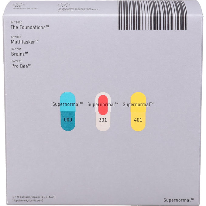 Optimera din hälsa med Supernormal™ kosttillskott! ✨ Detta kraftfulla kit innehåller 4 olika kosttillskott som Multitasker, Brains och Pro-Bee i 28 dagsdoser. En komplett mix av vitaminer, mineraler och bakteriekultur! 🌿💊