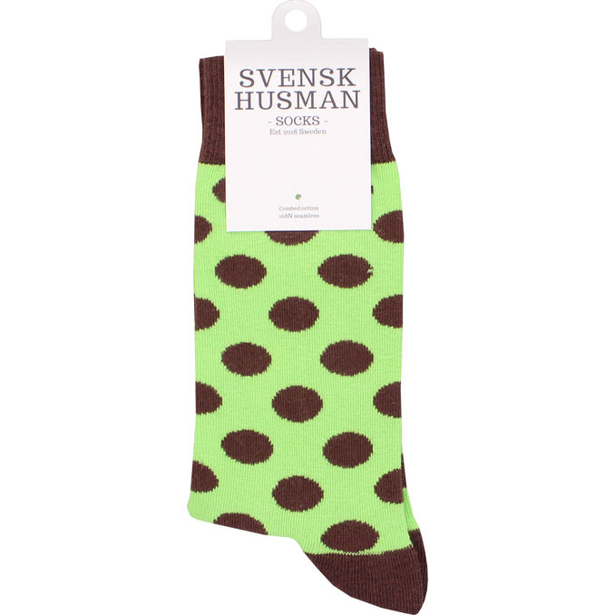Lekfulla strumpor med ett prickigt mönster i grönt och brunt som ger en färgstark detalj till din outfit. Tillverkade i en mjuk bomullsblandning som ger en bekväm passform och passar perfekt för vardaglig användning.