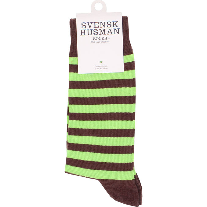 Mjuka och bekväma strumpor med ett randigt mönster i brunt och grönt som ger en lekfull och stilren look. Tillverkade i en behaglig bomullsblandning som sitter skönt på foten och passar perfekt för både vardag och fritid.