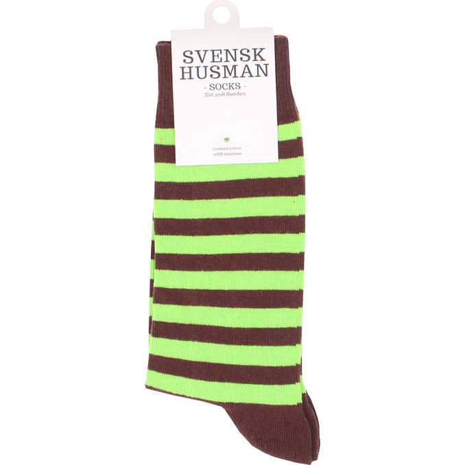 Mjuka och bekväma strumpor med ett randigt mönster i brunt och grönt som ger en lekfull och stilren look. Tillverkade i en behaglig bomullsblandning som sitter skönt på foten och passar perfekt för både vardag och fritid.