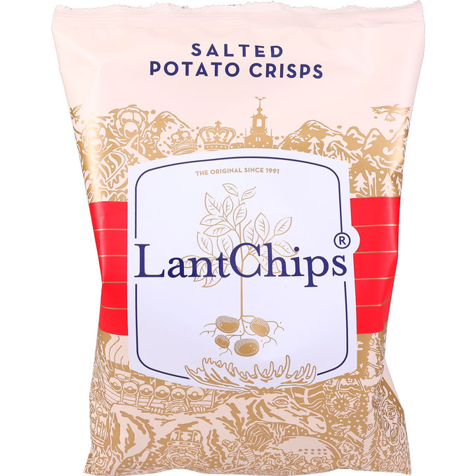 LantChips Salted Potato Crisps är klassiska krispiga potatischips med en balanserad sälta som lyfter den naturliga potatissmaken. Tillverkade av 71,8 procent potatis och friterade i solrosolja och rapsolja för ett gyllene och frasigt resultat.