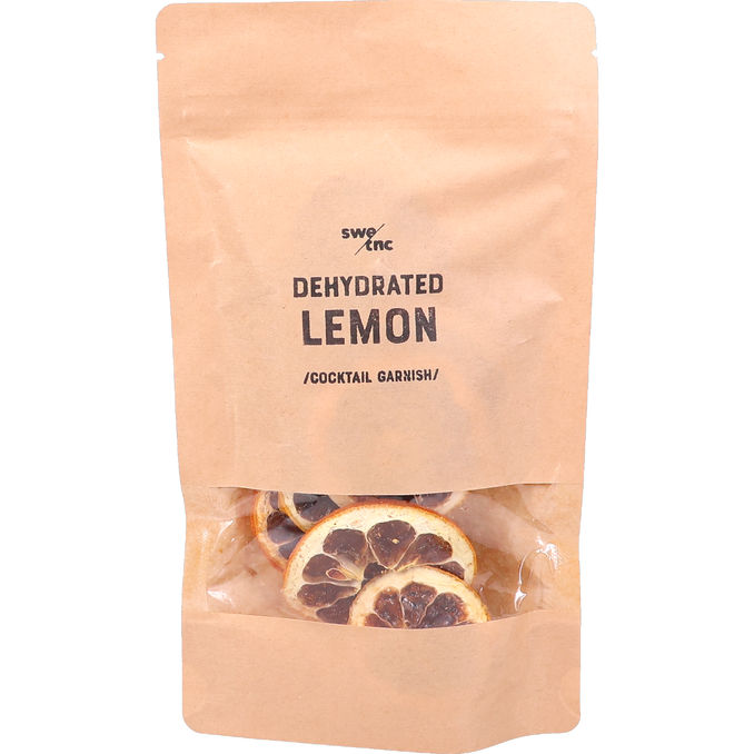Med torkad citron från Swedish Tonic slipper du kladdet med att skiva färsk frukt varje gång det vankas drinkar. Dessa varsamt torkade citronskivor bevarar både den friska aromen och den vackra gula färgen, vilket gör dem till den perfekta "garnishen" för en professionell servering hemma.