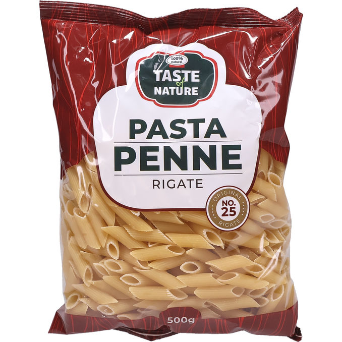 Klassisk penne rigate pasta med räfflad yta som gör att såser fäster extra bra. Perfekt till allt från krämiga pastarätter till tomatbaserade såser och sallader.