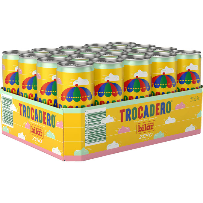 Två svenska klassiker möts i en unik kombination! Trocadero Zero med smak av Ahlgrens Bilar bjuder på den välkända fruktiga friskheten från Trocadero, toppad med den karakteristiska smaken av Sveriges mest älskade godisbil. Resultatet? En bubblande upplevelse som är både nostalgisk och överraskande modern.