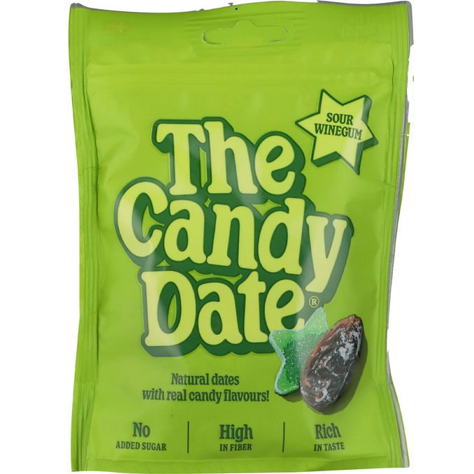 The Candy Date Sour Winegum är mjuka dadlar med smak av sour winegum som kombinerar naturlig sötma med en härligt syrlig twist. Ett spännande godisalternativ som överraskar med både smak och textur.
