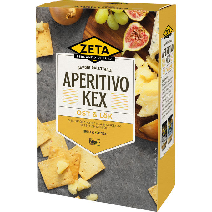 Tunna och krispiga kex bakade av vete- och rismjöl med smak av ost och lök. Perfekta att servera till ostbrickan, som tilltugg eller till ett glas vin.