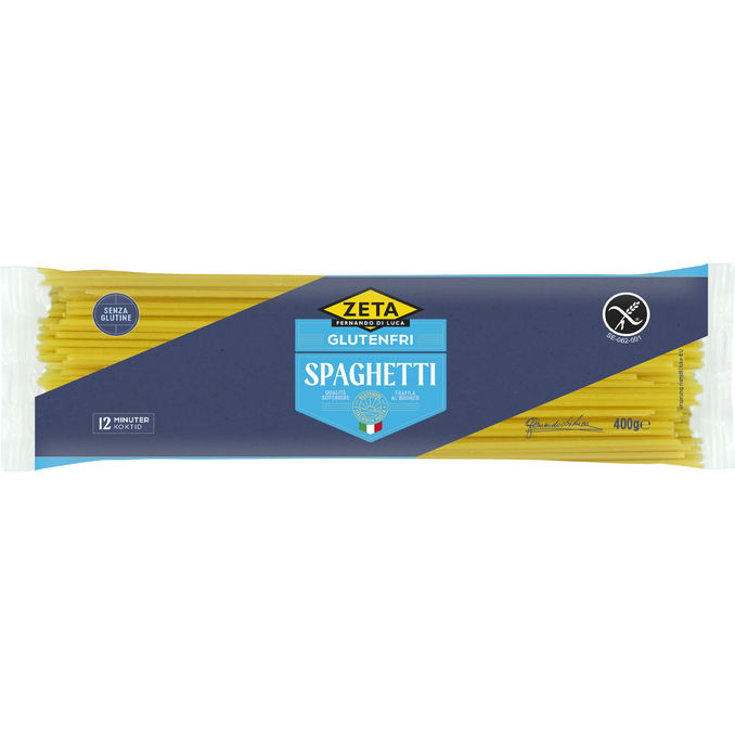 Glutenfri spaghetti från Zeta tillverkad av majsmjöl och rismjöl för en klassisk pastakänsla utan gluten. Perfekt till allt från enkla pastarätter till fylliga italienska såser.